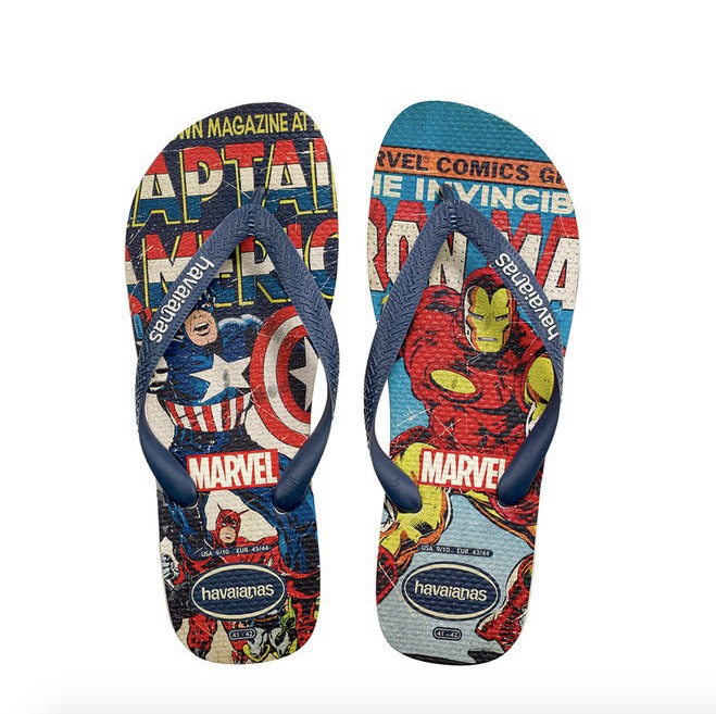Agora pode ter o Capitão América a seus pés. E quem diz o Capitão América, diz Iron Man, o Homem Aranha ou o Hulk. Mas há tantos super heróis para descobrir que o melhor mesmo é ver a mais recente coleção da Havaianas, que presta homenagem à Marvel e às suas histórias e personagens.