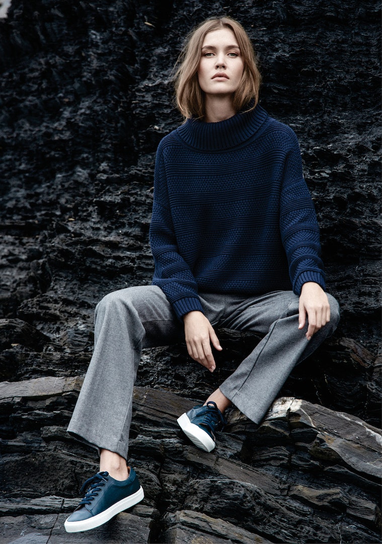 Cores sólidas como o azul marinho e o vermelho, o cinza e o cru, os rosas e os castanhos, fazem parte da oferta cromática da marca para esta temporada. As malhas são um elemento essencial e surgem em diferentes variações, assim como os tricôs em algodão, que compõem peças quentes e confortáveis.