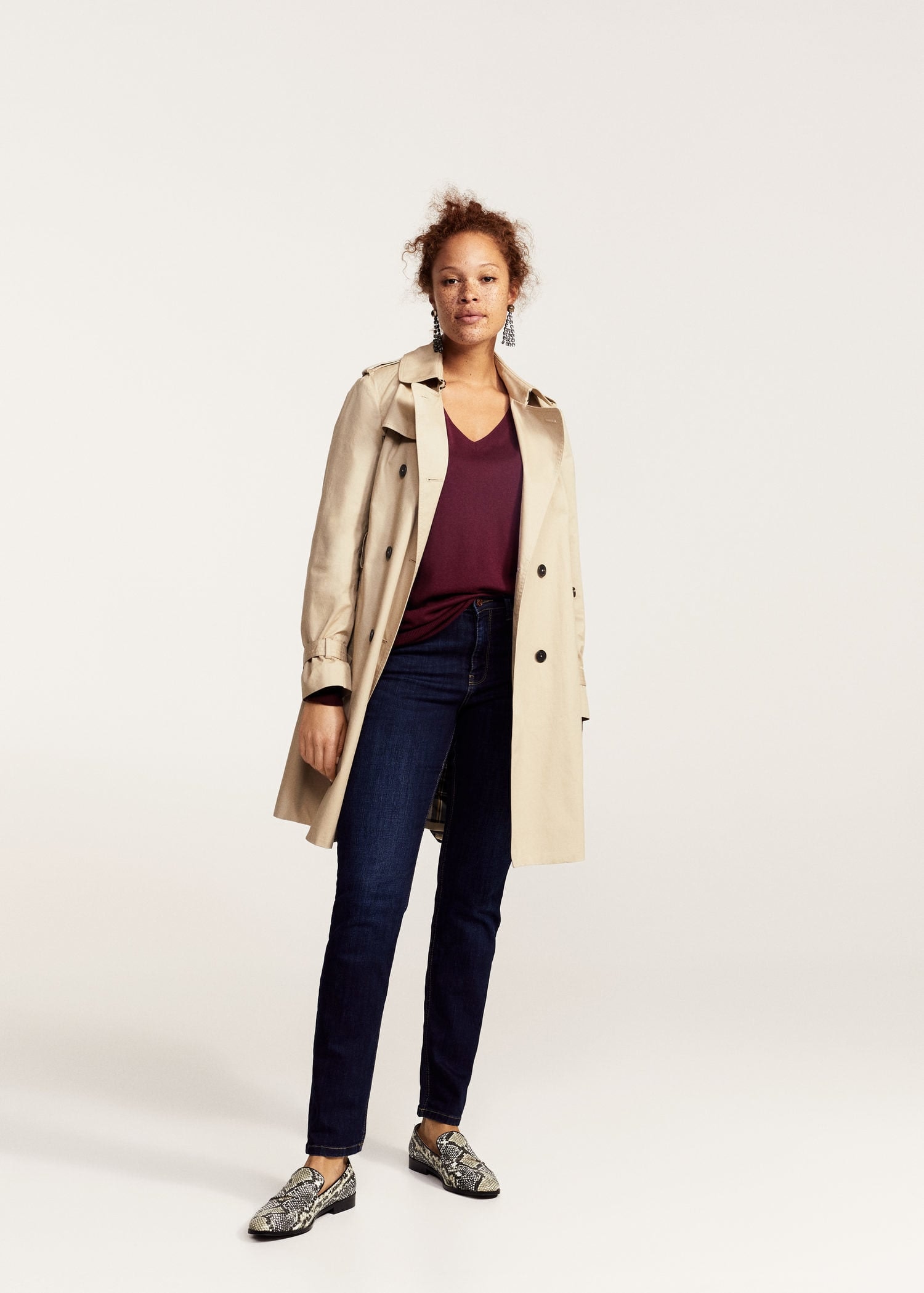 Camisas fluidas, vestidos florais, jeans estruturados ou trench coats de corte clássico são algumas das peças chave que marcam a estação outono-inverno da linha Violeta by Mango. Padrões como as riscas ou o vichy dão vida a saias compridas, blusas e camisolas.