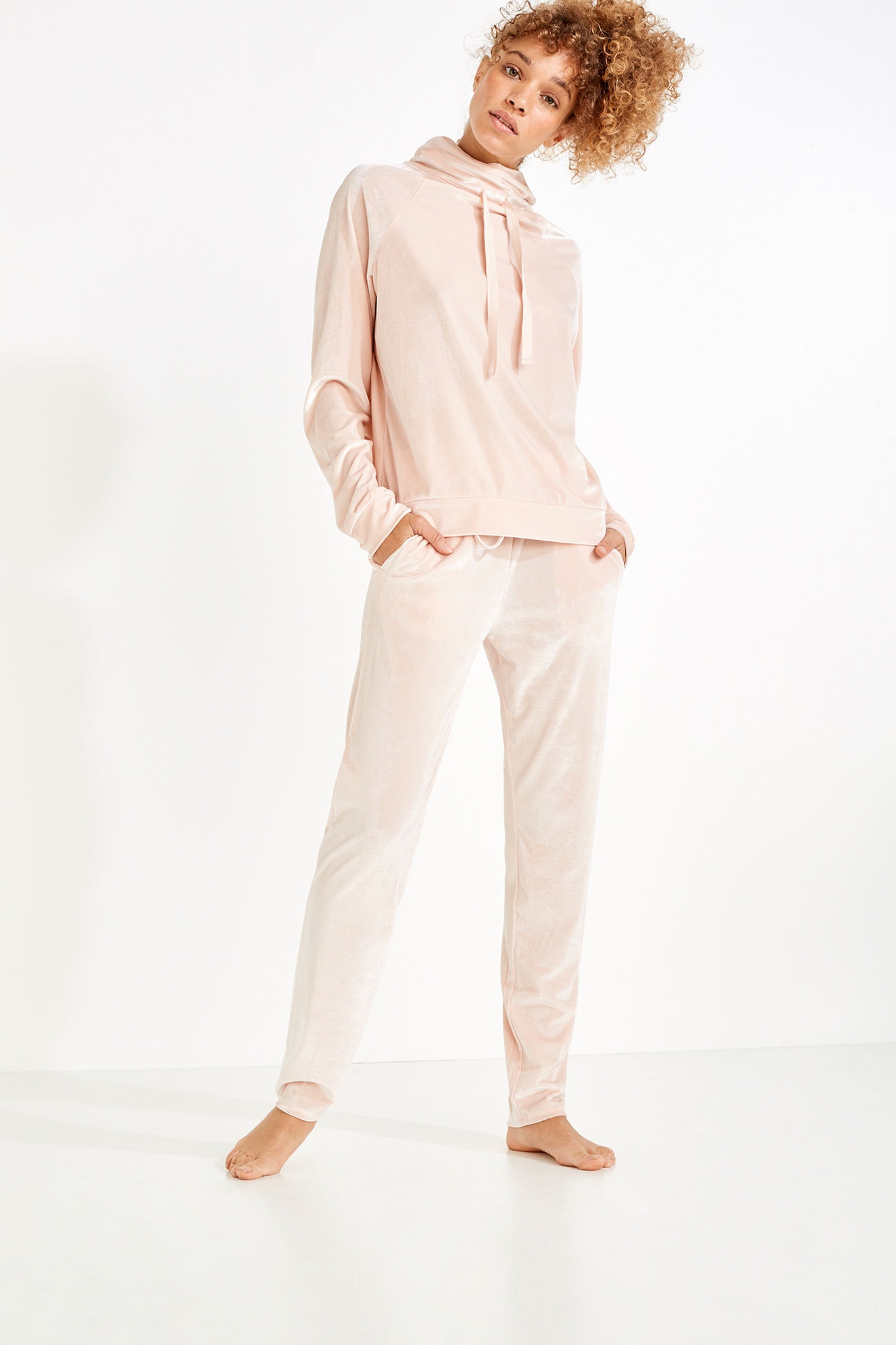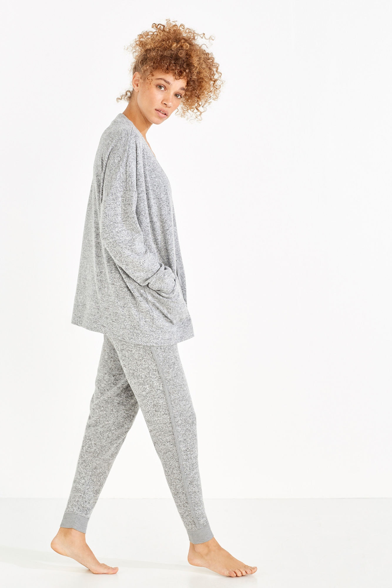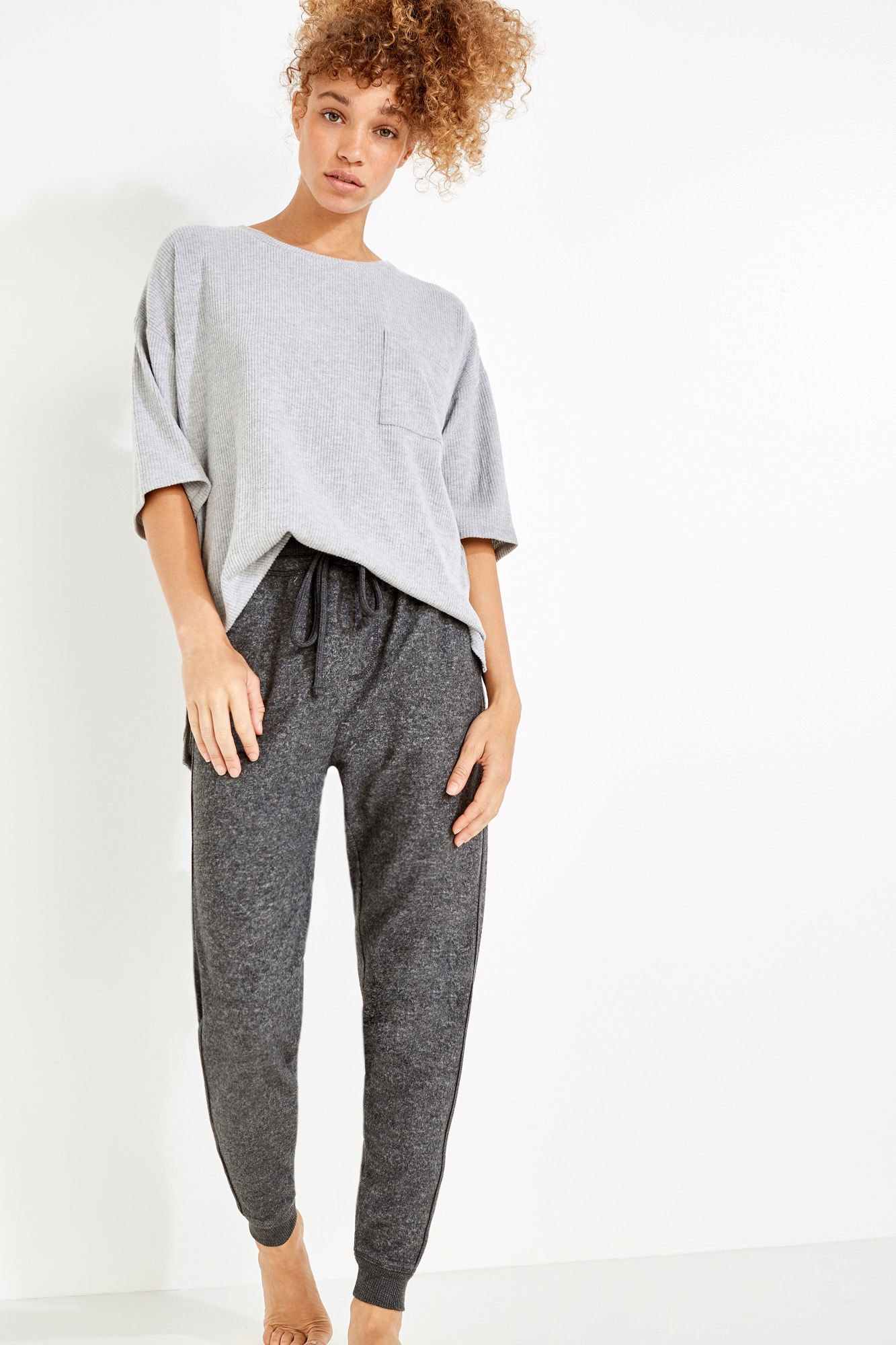 Joggers, bodies, t-shirts e sweartshirts versáteis, em tons neutros e com texturas cómodas, como rendas, malhas, algodões ou veludo, integram uma oferta confortável, feminina e sensual.